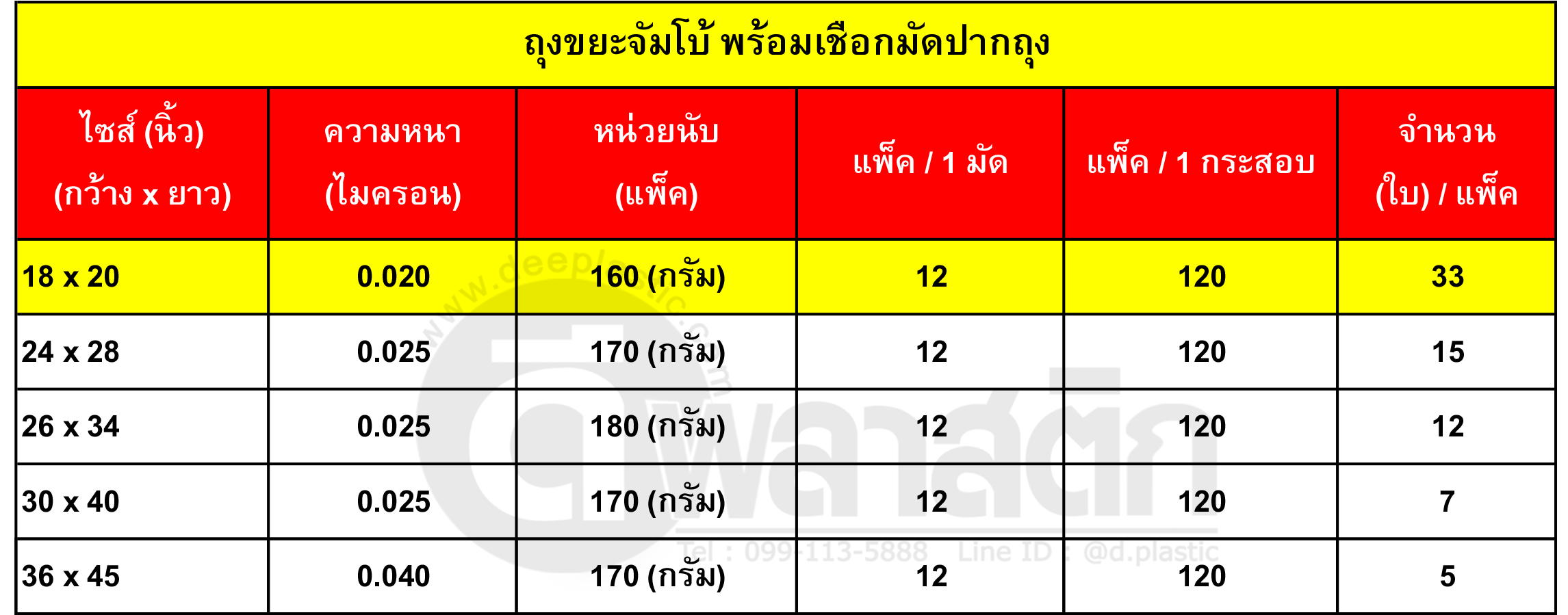 ขนาด 18x20นิ้ว บรรจุ 30ใบ/แพ็ค